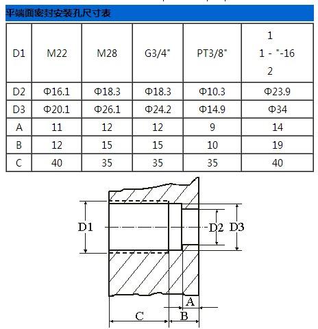 全系列傳感器、變送器連接螺紋開孔尺寸